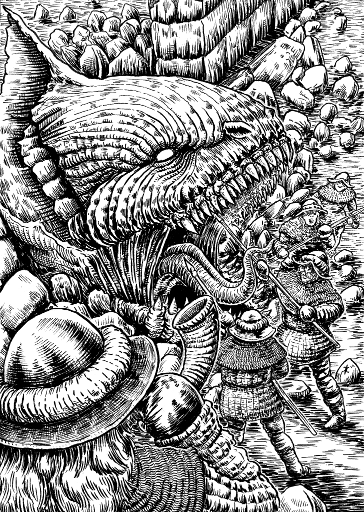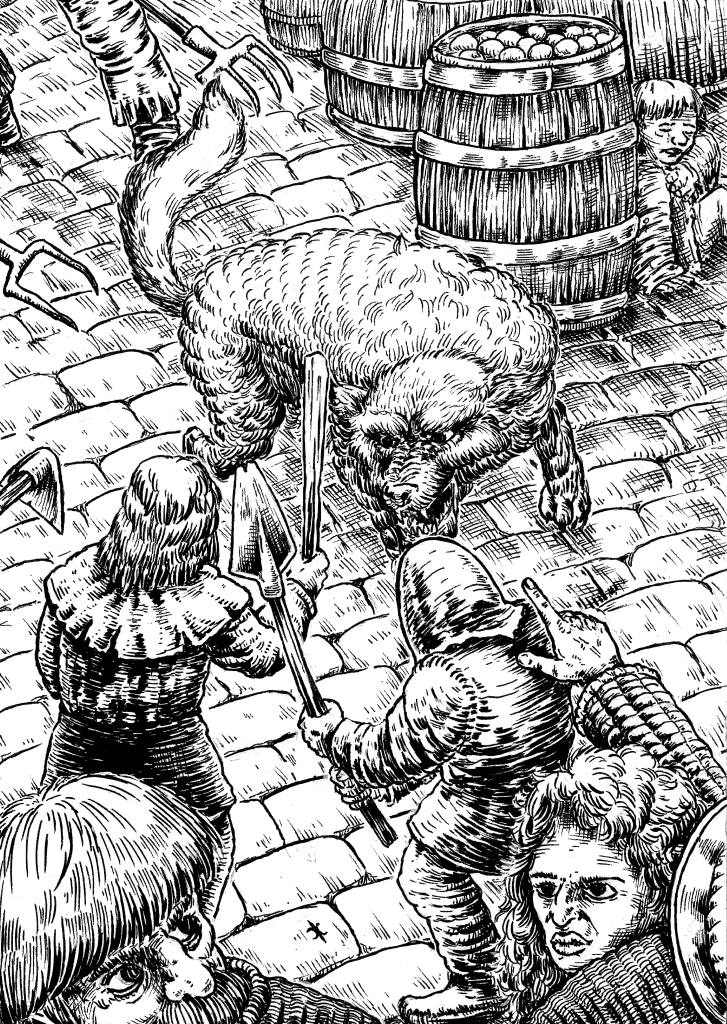 The City Watch was published using The Open Gaming Licence. This means that legally I was allowed to use almost all the rules from 5th edition Dungeons & Dragons, though I was not allowed to imply that it is an official D&D product, or even use the words Dungeons & Dragons, or Dungeon Master, anywhere in the publication. Also, for some reason, there are a very small number of D&D monsters that I was not allowed to use, and this list includes two monsters that I badly did want to use because they fitted so well with the story that I had created (and also because one of my aims was to give the players the opportunity to encounter as many as possible of the most iconic monsters in D&D). In the published version of the zine therefore, I substituted different monsters for the ones I was not allowed to use; when you run the game as DM, I recommend you go with the original monsters, as follow.